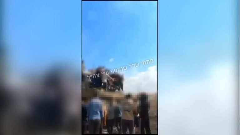 The video shows the soldier, Matan Angrest, surrounded by a dozen men atop the turret of an Israeli tank. The men, whose faces are blurred in the video, then lower Angrest, head first, off the tank into the arms of Palestinian militants, who barely catch him.