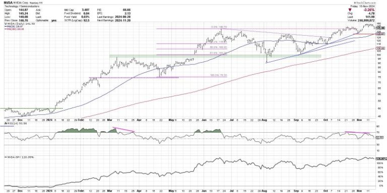 There’s no denying the strength that the mega-cap growth names have exerted on the equity markets in 2024. With their outsized weight in the major equity averages, and their strong performance into November 2024, the Magnificent 7 stocks in many ways reflect the investor optimism that has been much of the story of this bull market. But with these leading growth names rotating lower this week, pushing the Nasdaq 100 down 3.4% and the S&P 500 down 2.1% through Friday’s close, we need to reconsider the sustainability of the uptrend phase through year-end 2024.